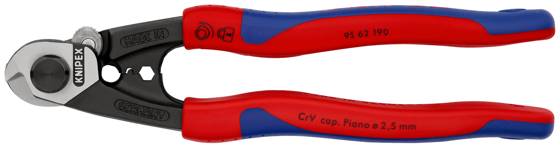 KNIPEX 95 62 190 SB Cortacables para cable trenzado acerado forjado Con fundas en dos componentes 190 mm